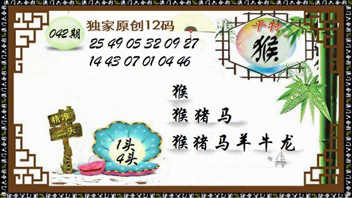 042期▲管家婆▲【■霸全神算■一肖一码■独家发表】3中2